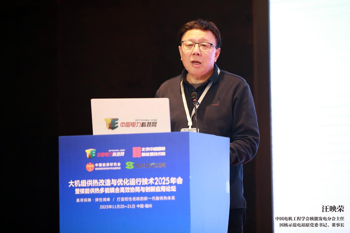 中國電機工程學會核能發電分會主任,國核示范電站原黨委書記、董事長汪映榮,發表“大型核電裝備及供熱機組建造的可持續發展能力評估”演講,評估核電供熱潛力,創新協同發展模式。他指出,我國核電裝備制造已實現從“規模擴張” 到“質量提升”的戰略轉型,構建了全球最完備的產業鏈生態,在主設備制造、技術標準建設等方面實現“并跑”乃至“局部領跑”。針對能源轉型需求,深入分析“核基荷+燃煤調峰”模式的環境承載力,認為該模式能憑借核電低排放的基荷保障與燃煤機組的調峰彈性,兼顧供熱穩定性與低碳性,是破解新能源波動性難題的務實過渡方案,為韌性低碳供熱體系奠定基礎。同時強調,產業協同與商業模式創新是關鍵路徑,需推動核電與石化、數據中心等領域深度耦合,拓展多元供能場景,并呼吁各方加強合作,破解標準不統一、創新不足等瓶頸,加速核電供熱技術規模化應用,助力“雙碳”目標實現。