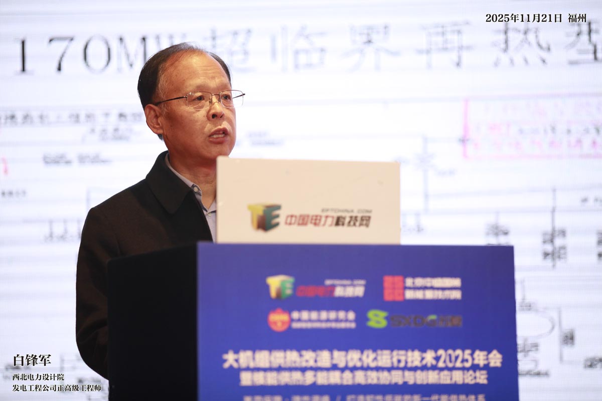 西北電力設計院發電工程公司正高級工程師白鋒軍,發表“超(亞)臨界再熱型高效背壓式機組設計及核電供熱思考”演講。對比分析純凝、抽凝與背壓式機組的熱經濟指標,指出背壓式機組在低煤耗、零冷源損失等方面的顯著優勢,同時明確了其設計中的控制邏輯、供汽量調控等核心難點。提出通過優化熱力系統配置、攻克機組設計關鍵技術,可充分發揮超(亞)臨界再熱型背壓式機組的高效供熱潛力;針對核電供熱,需結合華龍一號、高溫氣冷堆等機型特點,完善蒸汽轉換設備與疏水回收系統設計。他詳細闡述了機組設計要點與核電供熱技術路徑,為供熱機組升級與核電供熱應用提供了實踐參考。