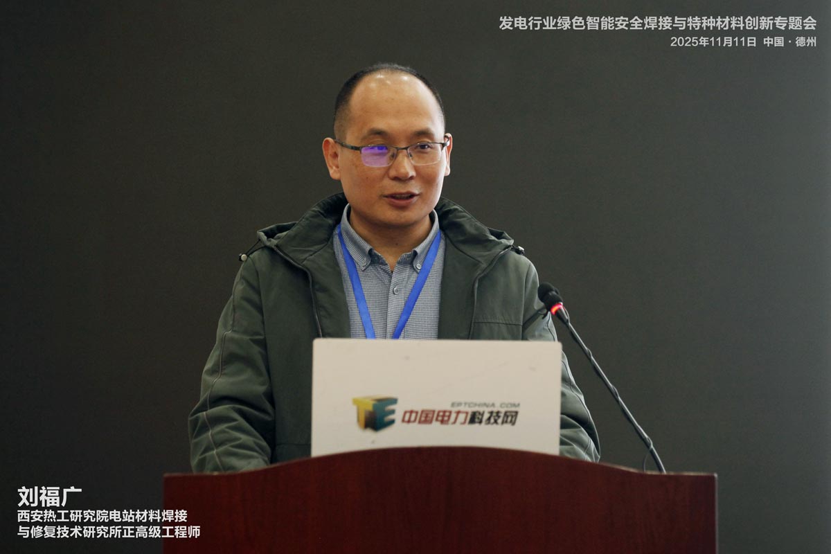 西安熱工研究院電站材料焊接與修復技術研究所正高級工程師劉福廣,發表“深度調峰火電機組重要承壓部件焊接接頭多發失效機理及金屬監督數字化發展趨勢”演講。系統闡述了深度調峰火電機組重要承壓部件焊接接頭的多發失效機理,重點剖析了9%Cr耐熱鋼Ⅳ型開裂、異種鋼焊接接頭早期開裂等典型失效模式的成因與演化規律。針對傳統失效防控手段存在監測滯后、評估精度不足,響應效率低等突出問題,明確提出缺陷防控數智化方向,涵蓋裝備智能化、監測預警數智化及壽命評估精準化。依托AI、大數據及材料科學研究,構建精準損傷評估模型,規避國外規范的保守性問題,保障機組安全長周期運行。
